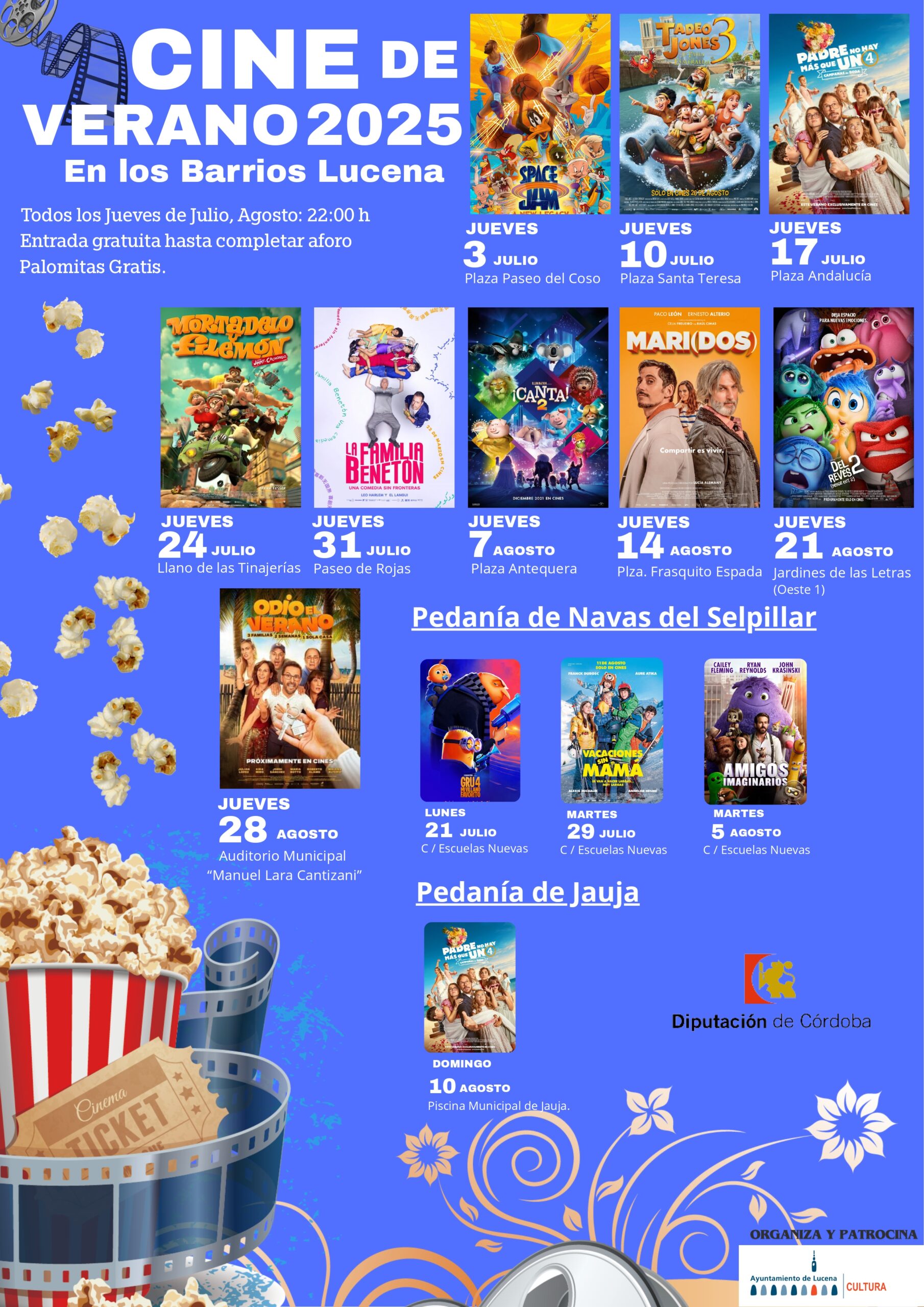 La Delegación de Cultura del Ayuntamiento de Lucena y la Diputación Provincial de Córdoba, a través de su Delegación de Cultura, tiene el gusto de presentar: Cine de Verano 2025 en los barrios de Lucena.