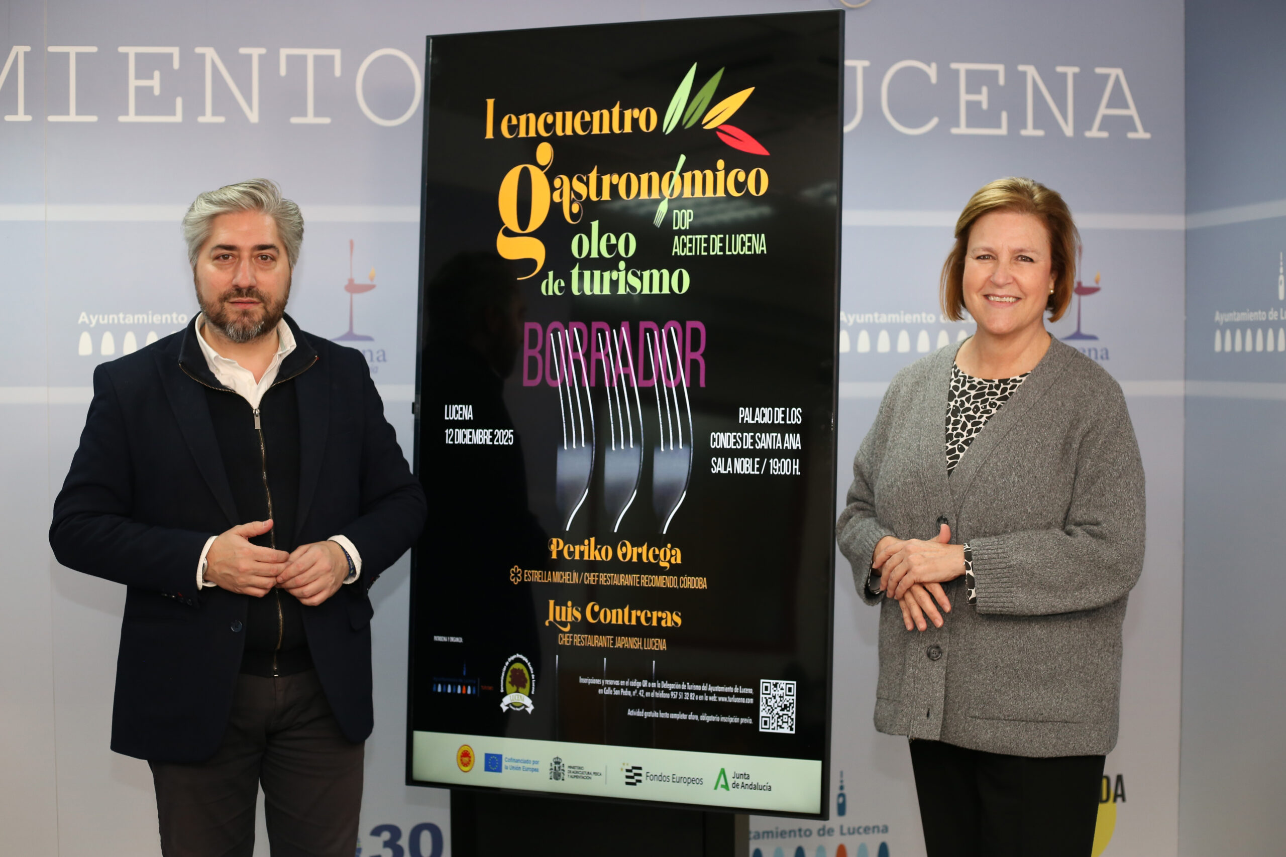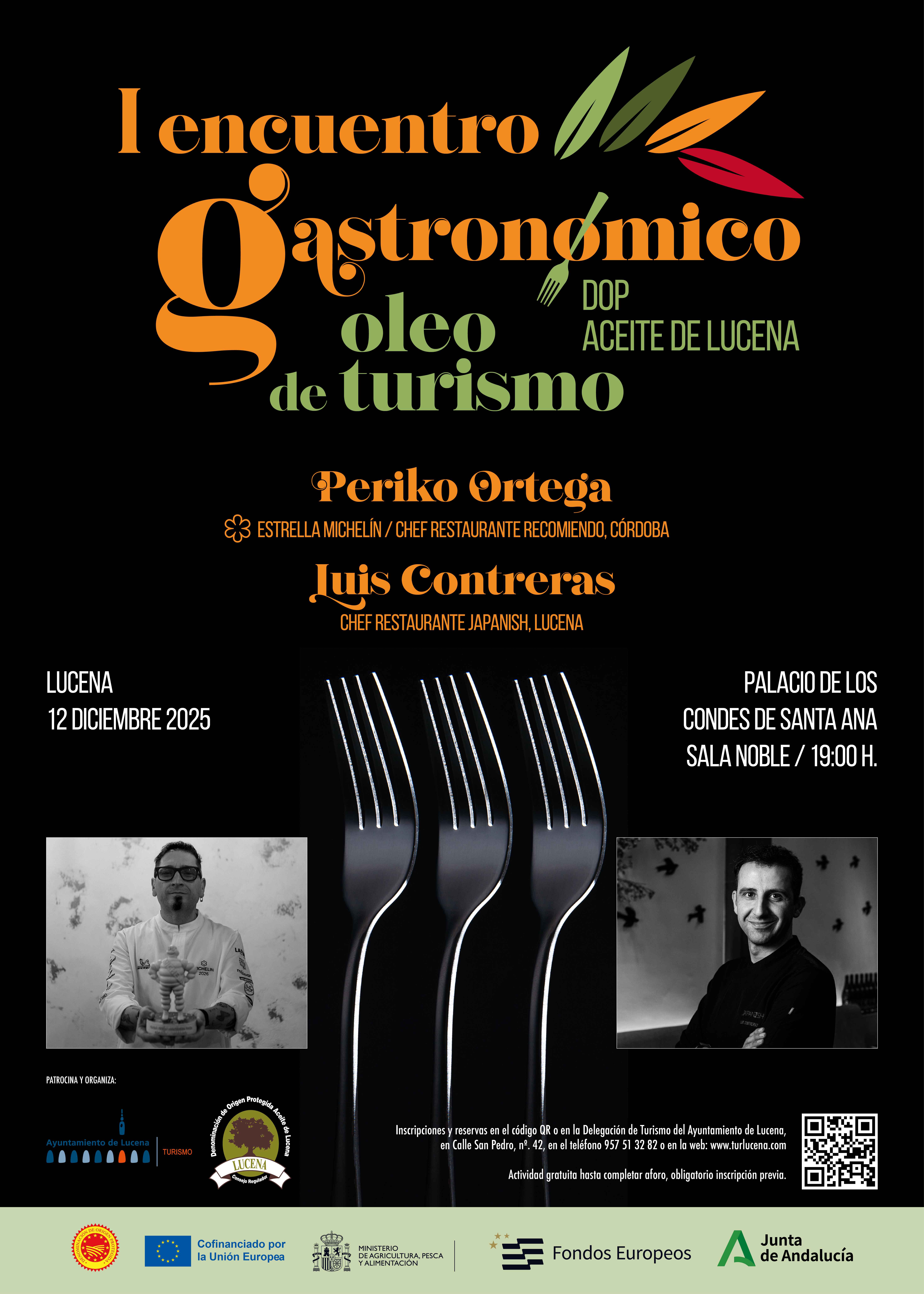 Este proyecto reunirá a reconocidos chefs a nivel local, regional y nacional, con el objetivo de mostrar en directo la elaboración de recetas con aceite de Lucena y reforzar la difusión de los recursos patrimoniales y gastronómicos de la ciudad. En esta primera edición, el encuentro reunirá a dos prestigiosos chefs: Periko Ortega, del restaurante ReComiendo (Córdoba) y reciente ganador de una estrella Michelín, y Luis Contreras, del restaurante local Japanish, uno de los espacios gastronómicos más innovadores y con mayor proyección de la ciudad.