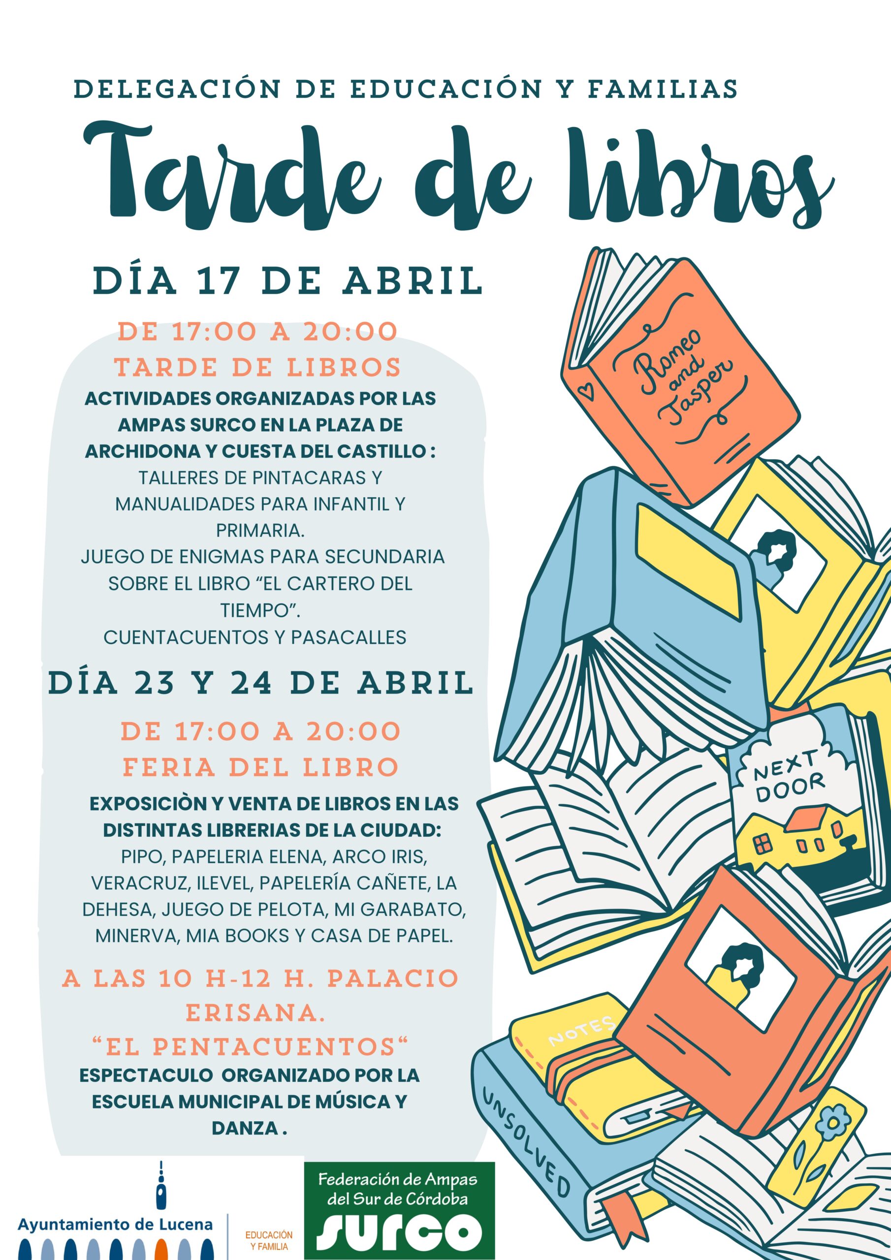 El Ayuntamiento de Lucena y la Federación de Ampas del Sur de Córdoba (SURCO) han presentado la programación de la “Tarde de Libros”, una iniciativa que se celebra con motivo del Día del Libro y que tendrá lugar este próximo viernes 17 de abril, de 17:00 a 20:00 horas en el centro urbano de la ciudad.